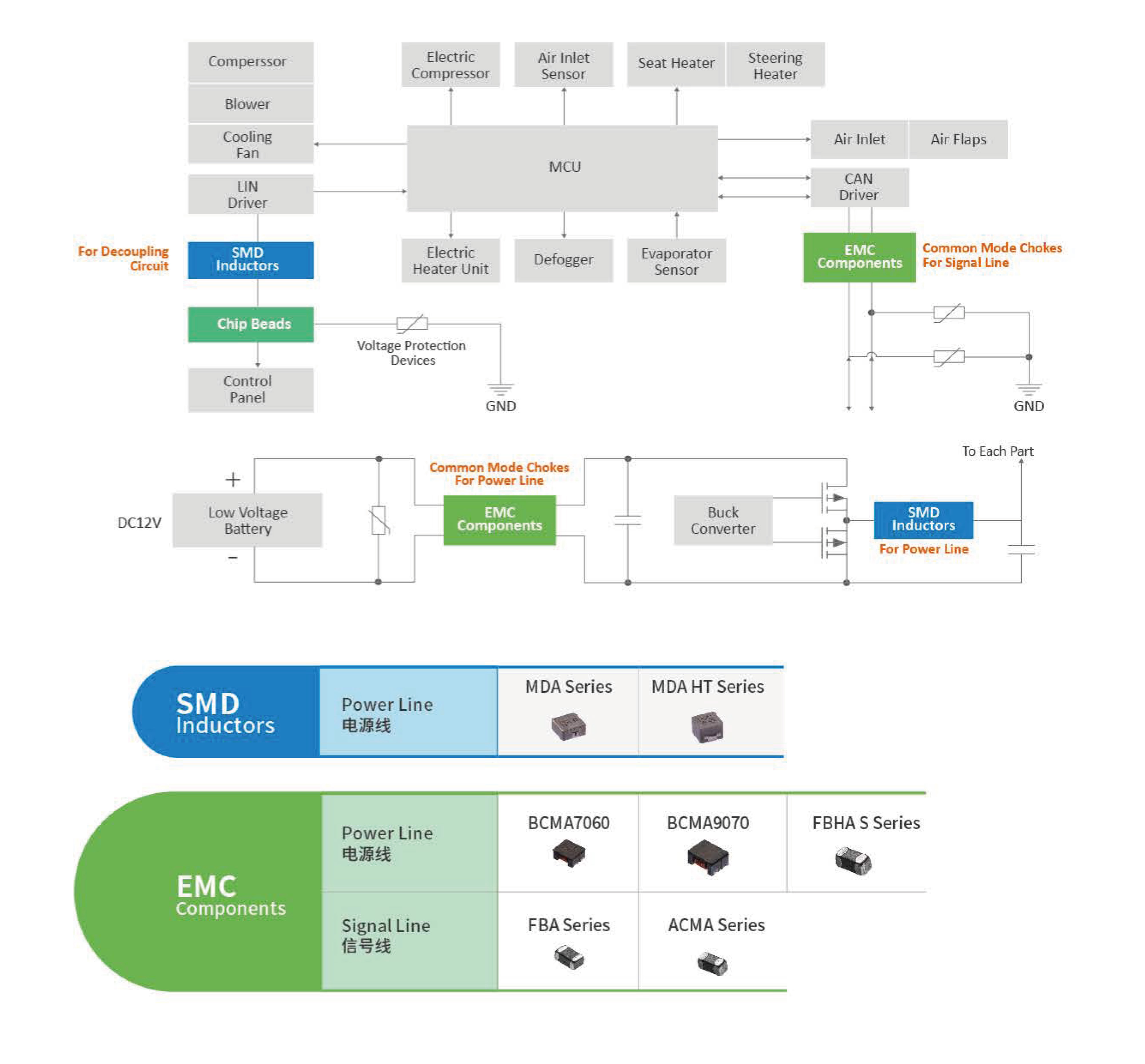 在汽車(chē)空調(diào)控制器模塊中,科或的磁性元器件通過(guò)優(yōu)化濾波與能量傳輸路徑,有效抑制電源與控制信號(hào)中的電磁干擾,提升空調(diào)系統(tǒng)的響應(yīng)速度和溫控精度。在當(dāng)今對(duì)艙內(nèi)舒適性與節(jié)能效率要求越來(lái)越高的背景下,這類(lèi)高性能磁性元器件的應(yīng)用,顯著增強(qiáng)了空調(diào)控制系統(tǒng)的穩(wěn)定性與用戶(hù)體驗(yàn)。