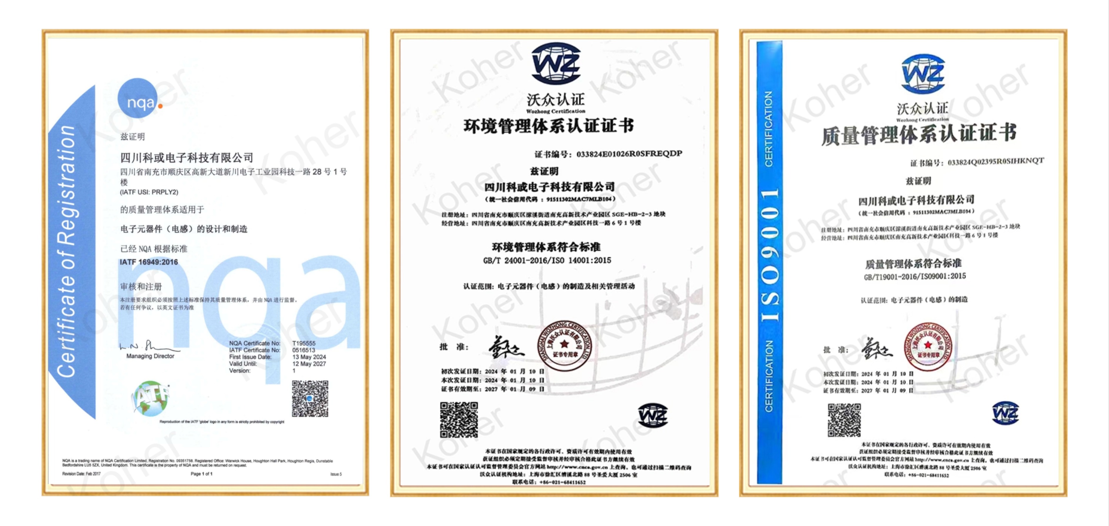 公司已通過(guò)ISO9001質(zhì)量管理體系、ISO14001環(huán)境管理體系及IATF16949汽車(chē)產(chǎn)品質(zhì)量體系認(rèn)證,同時(shí)產(chǎn)品符合AEC-Q200標(biāo)準(zhǔn),全面推行標(biāo)準(zhǔn)化質(zhì)量控制,全力保障每一件出廠產(chǎn)品的可靠性與可追溯性。
