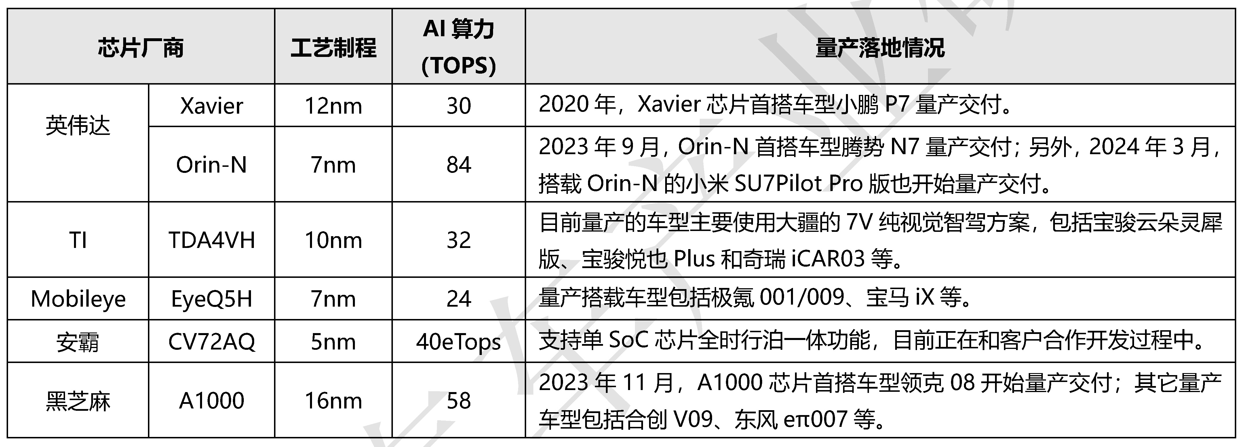 1、智能駕駛SoC芯片競爭格局