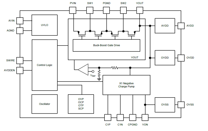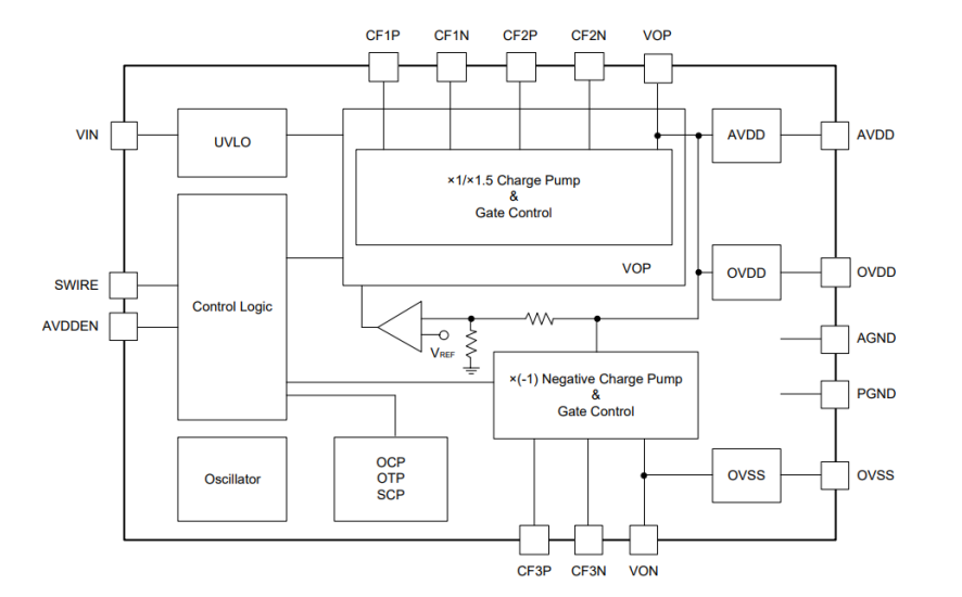 • OVSS:-2.8V~-3.5V(默認輸出電壓:-3.3V±1%,0.1V步進)