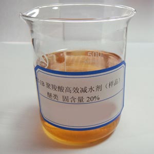 外觀形態(tài)分為水劑和粉劑。水劑含固量一般有20%,40%(又稱母液),60%,粉劑含固量一般為98%。根據(jù)減水劑減水及增強能力,分為普通減水劑(又稱塑化劑,減水率不小于8%,以木質(zhì)素磺酸鹽類為代表[2] )、高效減水劑(又稱超塑化劑,減水率不小于14%,包括萘系、密胺系、氨基磺酸鹽系、脂肪族系等[2] )和高性能減水劑(減水率不小于25%,以聚羧酸系減水劑為代表[2] ),并又分別分為早強型、標準型和緩凝型。
